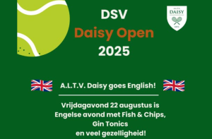 Nog anderhalve week en dan gaat het DSV Daisy Open Toernooi weer van start. Een week tennis, bomvol mooie wedstijden en veel gezelligheid. Het toernooi is al volgeboekt, maar gelukkig kun je ook naar de club komen zónder dat je hoeft te spelen.